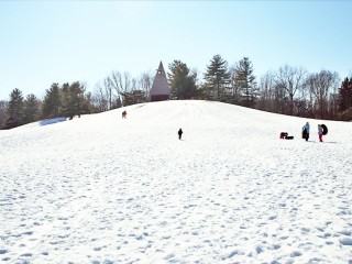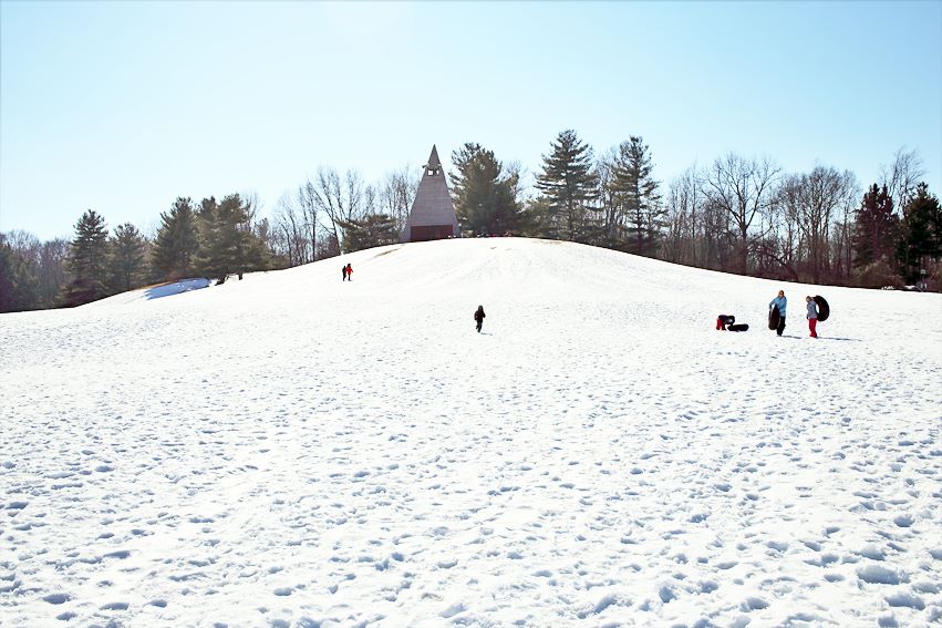 Named for a popular high school coach, the park features excellent tubing and cross-country skiing capabilities in the winter months with a newly-expanded warming shelter that includes both furnace heat and a stone fireplace for keeping warm. Prime location for astronomers to study stars. The park is lighted at night and includes ample parking, drinking fountains, a 55-foot teepee-like windbreak, picnic tables, enclosed children’s playground and play equipment, and nature trails. In the non-winter months, an 18 hole, par 66 Disc Golf course is open until dusk with discs for sale in the Gate House.