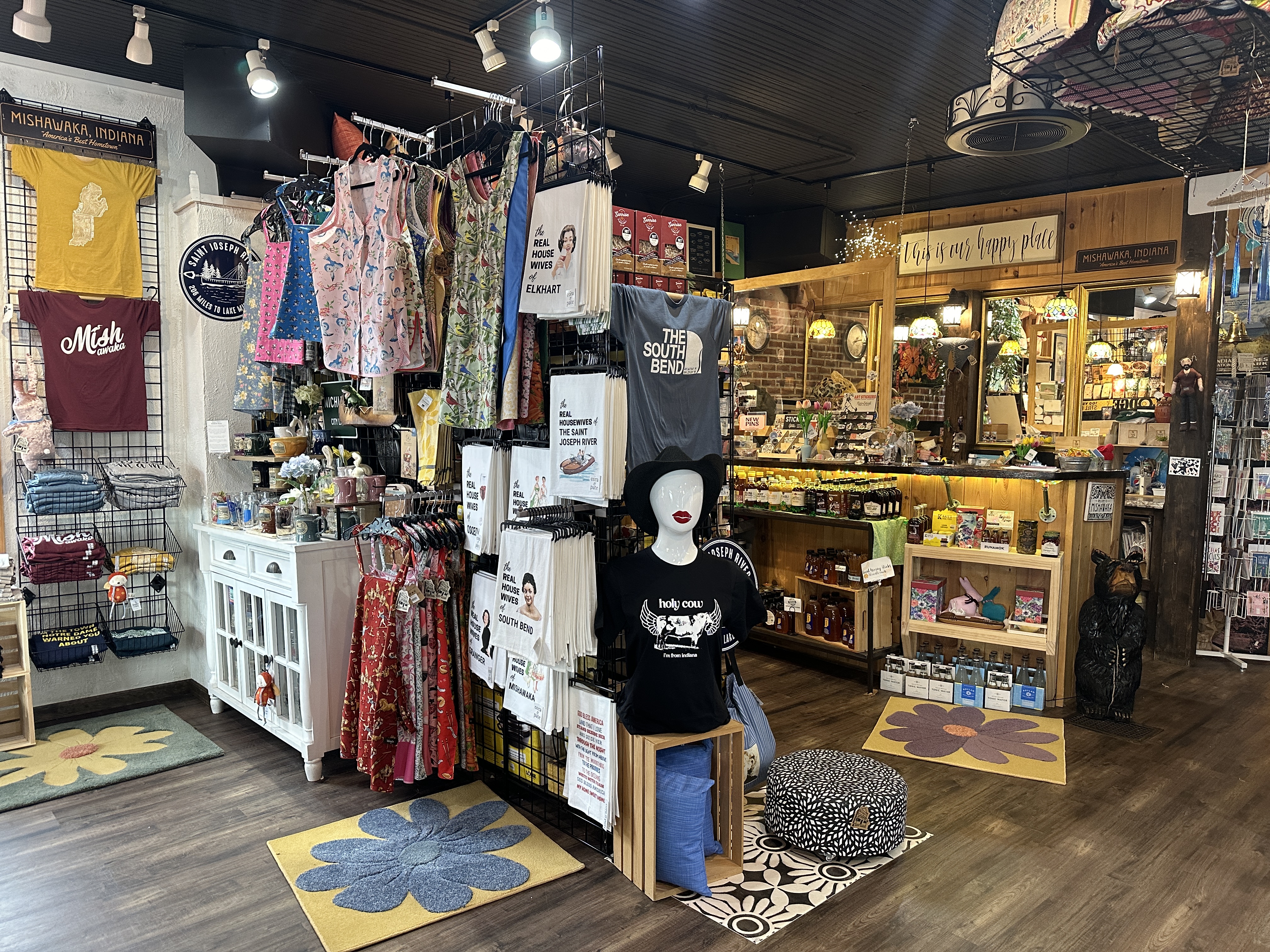 InRugCo. Studio & Gift Shop is located near the Mishawaka Riverwalk across from Central Park. Selling more than rugs, our small shop is fashioned after an old-time neighborhood mercantile with a wide variety of items and great customer service. We have gifts inspired by life in Mishawaka, Michiana and the Midwest. Don't be misled by our name! Inside you will find much more than rugs, including fresh baked goods, décor, outdoor clothing and footwear including national brands you'll recognize!