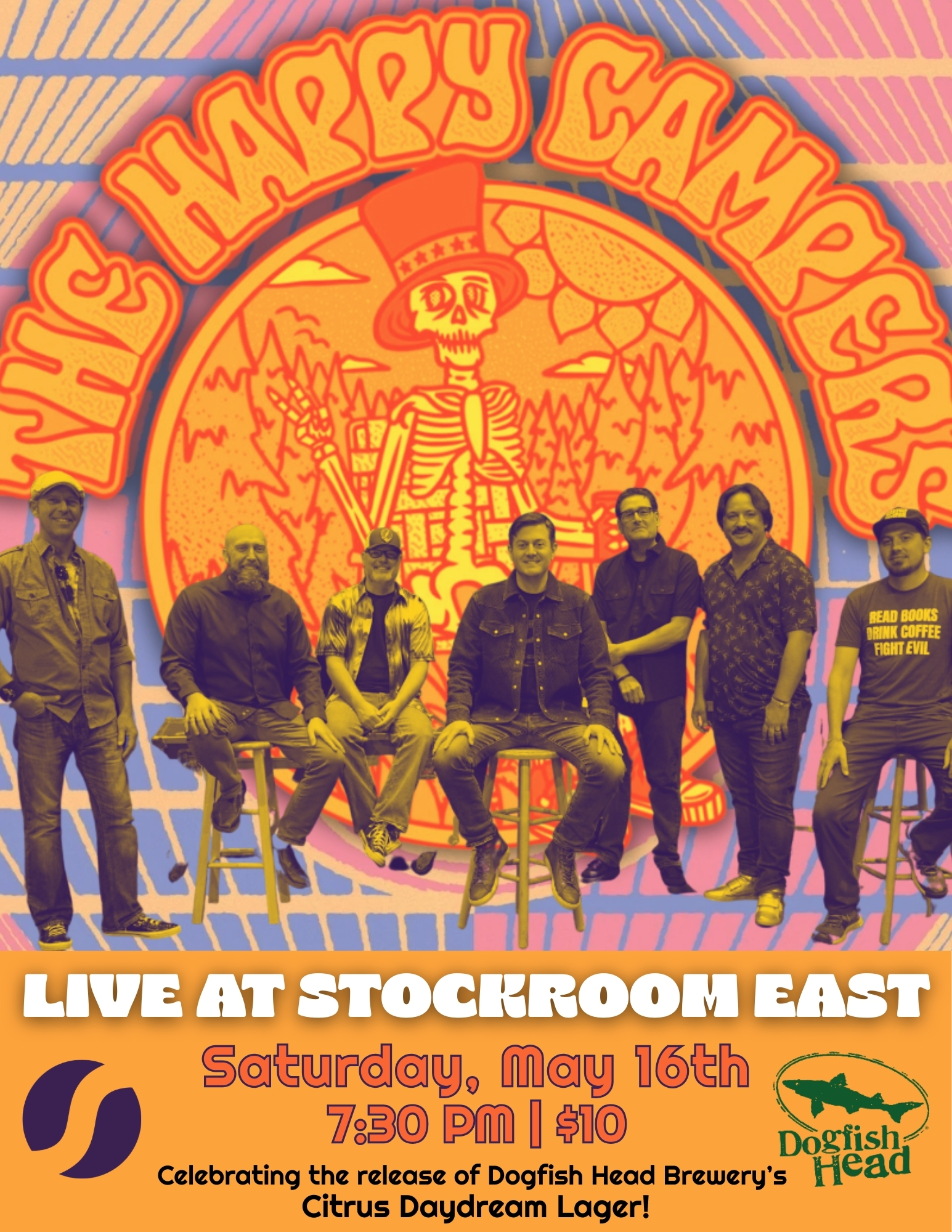 The Happy Campers are a South Bend, Indiana-based jam band who pay tribute to the Grateful Dead and other artists while also weaving original music into the mix. The group is composed of some familiar faces to the Michiana music scene and beyond who stay active with many projects. The Happy Campers come to the Stockroom East in collaboration with Dogfish Head Brewery to celebrate the Grateful Dead Citrus Daydream Lager. Don't miss this fun event with beer to drink music to!