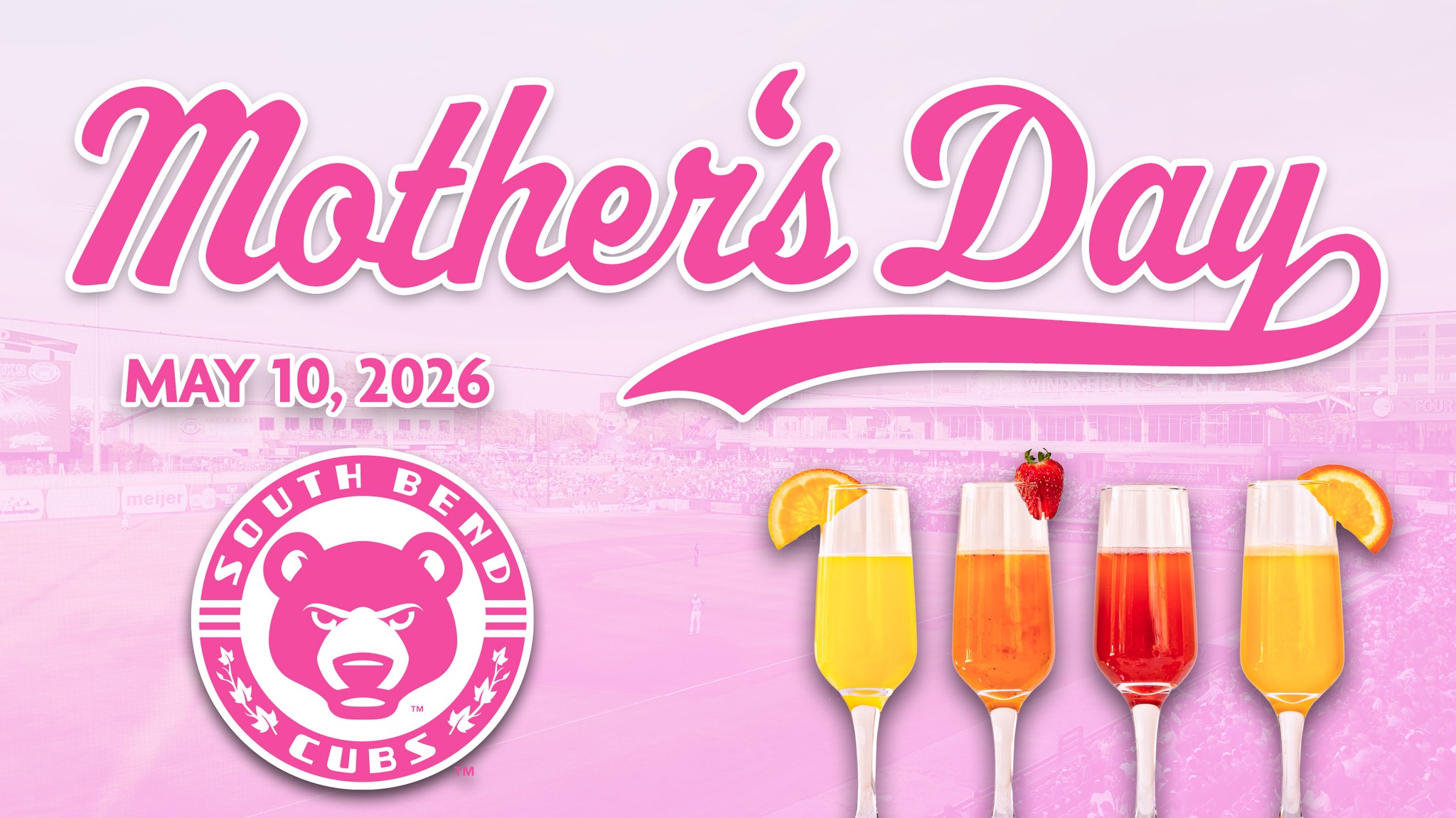 Celebrate Mother's Day in style with the South Bend Cubs on Sunday, May 10, and treat Mom to an unforgettable experience at Four Winds Field! Enjoy our newest premium group space, the Event Center, located just beyond the left field foul pole, while taking part in our annual Mother's Day Brunch VIP Package. This exclusive package includes assigned seating in the Event Center, a two-hour all-you-can-eat bistro-style brunch buffet, and the opportunity to purchase MOM-osas and other specialty cocktails for guests 21 and older.